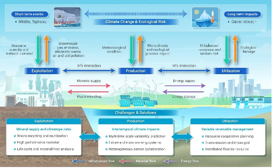 研究进一步提出了可再生能源开发与利用的潜在解决方案。(1)可再生能源精准化评估方面:未来的技术发展应侧重于加强多尺度气候预测和风险管理能力,揭示可再生能源时变动性及其驱动因素,建立长时序变动性预测方法及风险预警机制,保障可再生能源生产的稳定性和能源系统运行的安全性。(2)可再生能源高效利用机制方面:未来应发展跨发电、输电、负荷等关键技术的主动并网机制,供给侧与需求侧阐释其协同利用机制,可以通过需求响应、电动汽车、储能等交互技术,促进分布式可再生能源的消纳;在输电方面,灵活的交流和高压直流输电技术可以提高容量,而微电网和分布式发电可以最大限度地减少长距离输电需求;在储能方面,协同利用长时储能(例如氢能和抽水蓄能)和短时储能(例如电化学储能)可以进一步减小能源波动。三是可再生能源产业链方面:未来应注重开发更加环保的回收技术,如水冶金技术和生物浸出技术,并推动能源材料创新,特别是钙钛矿光伏材料的应用,这有望提高太阳能转换效率并降低资源依赖;同时,采用全生命周期分析方法评估能源产品的全程环境影响,将有助于提升能源开发的可持续性。