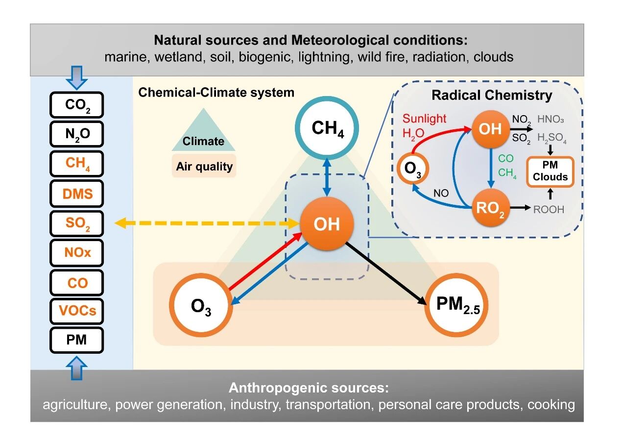 大气氧化性是衡量大气通过化学反应清除污染物(如甲烷、一氧化碳等)能力的关键指标,主要由羟基自由基(OH)等氧化剂物质决定。然而,传统的大气环境管理政策多针对单一污染物(如PM2.5、氮氧化物)进行独立减排,忽视了污染物之间通过影响大气氧化性而产生的复杂非线性化学反馈。这种“头痛医头、脚痛医脚”的策略可能导致治理效果相互抵消,甚至引发新的环境问题。
