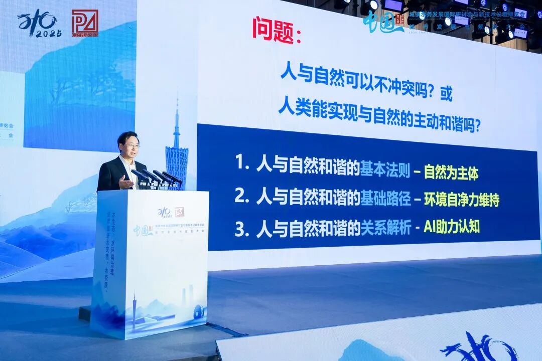 中国城市科学研究会副理事长、城科会水分会会长曲久辉院士今天上午在城市发展与规划大会上做主旨报告,题为“AI如何助力迈向人与自然和谐?”。围绕报告,与会观众讨论热烈,聚焦两个问题展开思考与想象:一是人与自然和谐如何从理念、愿景走向共同、具体的行动?二是生态环境领域的管理、科研、产业在新生产力工具的支撑下,能创造出怎样更为广阔的未来。