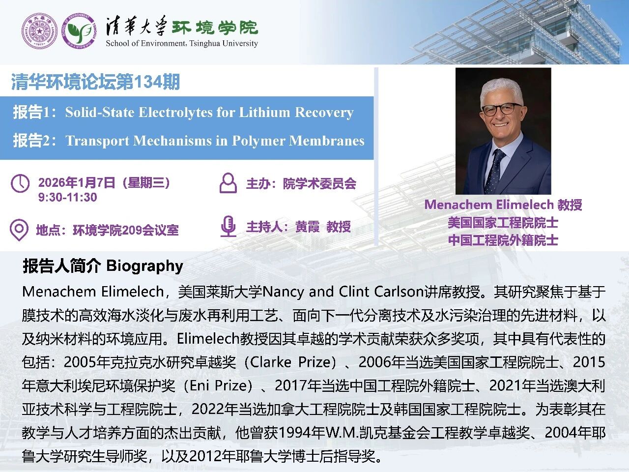 环境学术沙龙 | Solid-State Electrolytes for Lithium Recovery、Transport Mechanisms in Polymer Membranes